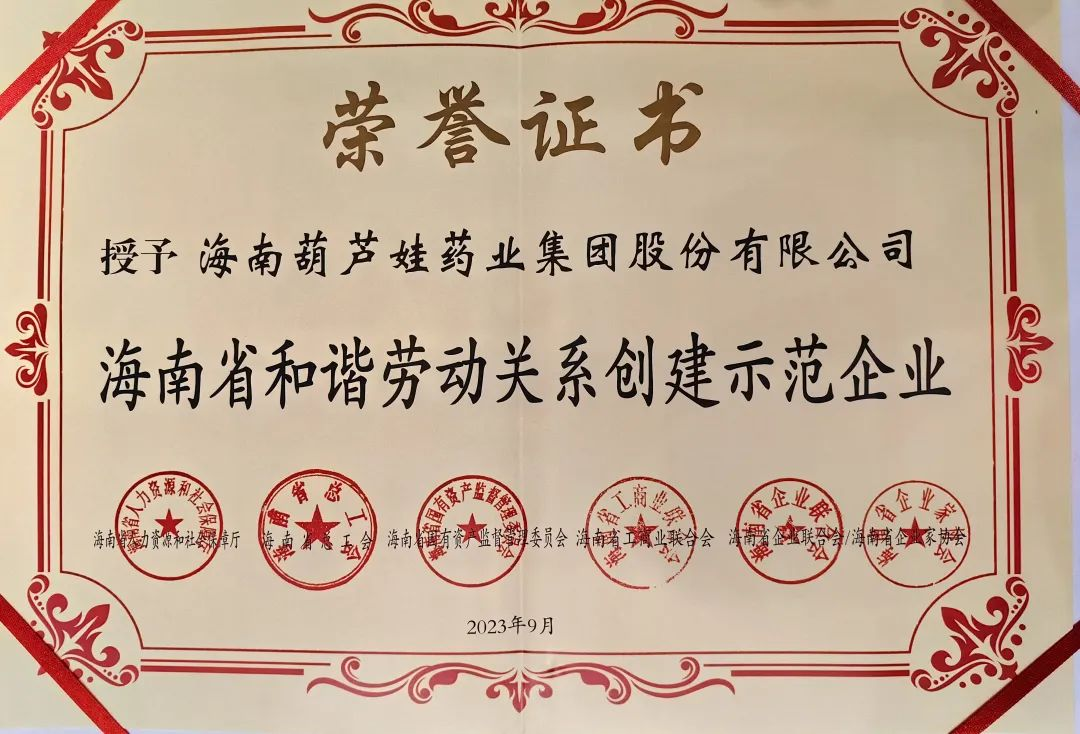 SG胜游药业集团获评“海南省和谐劳动关系创建示范企业”