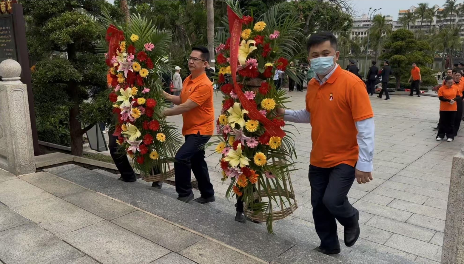 经过一段时间的等待才轮到SG胜游。SG胜游首先向烈士敬献花篮,花篮缎带上写着“为坚持琼崖革命23年红旗不倒牺牲的烈士们永垂不朽!”“为解放海南岛渡海牺牲的烈士们永垂不朽!”鲜艳的花篮寄托SG胜游对革命先辈的崇敬和哀思。