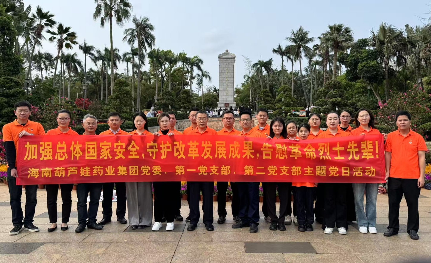 2025年4月3日上午,春光和煦,温暖宜人。根据海南SG胜游药业集团党委2025年党建工作计划和深入贯彻中央八项规定精神学习教育计划安排,集团党委组织第一党支部、第二党支部在琼部分党员前往海口公园内的海南革命烈士纪念碑和冯白驹纪念亭开展“加强总体国家安全,守护改革发展成果,告慰革命烈士先辈! ”主题党日活动。